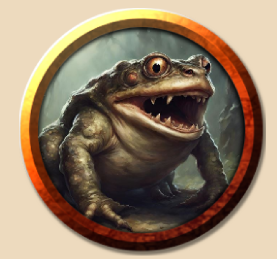 Le crapaud géant est une créature monstrueuse de la taille d’un éléphant, tapie dans les eaux sombres et profondes des étangs et des marécages. Sa peau pustuleuse et toxique dissuade les prédateurs, tandis que sa langue collante et extensible lui permet de capturer ses proies avec une précision mortelle. Ce prédateur patient et opportuniste se focalise sur les cibles en mouvement, attiré par les vibrations et les agitations à la surface de l’eau. Une fois sa proie en vue, il la frappe en un éclair, l’engloutissant avant qu’elle n’ait le temps de réagir. Bien que lent et massif, le crapaud géant est un chasseur redoutable, transformant les étangs paisibles en pièges mortels pour les imprudents qui s’en approchent.