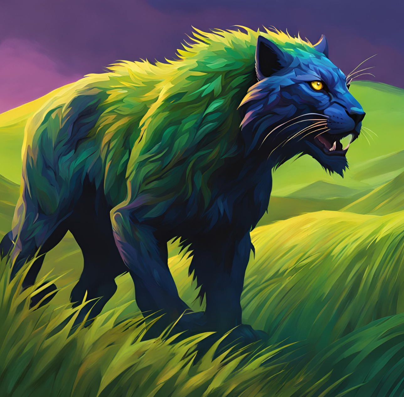 Le Fendril est un grand félin chasseur à l'affût, reconnaissable à son pelage unique : vert sur le dos et noir sur le ventre, lui permettant de se fondre parfaitement dans les hautes herbes où il a l'habitude de traquer ses proies. Solitaire et extrêmement territorial, ce prédateur est redoutable grâce à sa discrétion, sa rapidité et ses griffes acérées. Il attaque par surprise, bondissant sur ses victimes avec une précision mortelle. Bien que généralement évitant les confrontations directes, le Fendril défend son territoire avec une férocité implacable. Rencontrer un Fendril est une épreuve périlleuse, car sa capacité à se camoufler et son agilité en font un adversaire aussi insaisissable que dangereux.