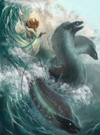 ### De tous les Anciens, la plus tempétueuse était Elanwe, première des filles de la fratrie des Célestes. Après la Genèse, Elanwe construit secrètement un royaume sous-marin, délaissant son domaine terrestre. Elle crée les Ondins, peuple des mers qui la servirent pour la construction de sa cité. Elle est découverte par Vahalarius qui fini par accepter ses créations. Devenue maîtresse des mers, elle prit possession des profondeurs insondables des Océans de la terre, qu’elle peupla d’une myriade de créatures. Elle ne sortait que rarement sur la terre, où elle se sentait à l’étroit et où elle n’aimait pas la proximité de son frère Vahalarius qui la restreignait. ### ### Elle fut en conflit avec ses frères lorsque leurs créations, les humains et les elfes, se mirent à parcourir les mers et à puiser les ressources qu’elle avait créée. Furieuse de la décision de Vahalarius d’autoriser ceux-ci à se nourrir du fruit de leur pêche, Elanwe crée les tempêtes furieuses et les calamités des océans, elle crée également de terribles créatures, les Léviathans, pour terroriser les terriens qui s’aventurent trop loin dans les océans insondables. Alors, les mortels qui parcourent les mers se mirent à prier et louer Elanwe pour l’apaiser et éviter son courroux. Celle-ci fini par autoriser les terriens à parcourir les mers, à la seule condition de laisser les océans libre de tout dirigeant. Ainsi les vastes mers du globe n’ont elle qu’une seule maitresse : la terrible Elanwe, et aucun peuple de la terre ne peut se réclamer de la possession de cet espace de liberté. ### ### De nos jours, Elanwe est la déesse mère de tous les peuples intelligents des mers, Ondins en premier lieu. Elle est également la déesse de tous les marins, qui la respecte autant qu’ils ne craignent son courroux, sachant qu’ils ne seront jamais que des invités sur les eaux de la terre. Les pirates en particulier sont pour la plupart de fervent adorateurs d’Elanwe, considérant que les océans sont éternellement libres et que nul monarques ne peut leur réclamer de ployer le genou. ###