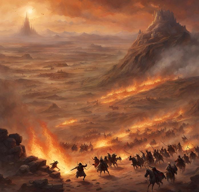 La bataille ultime pour la chute de l'Empire Solarien, connue sous le nom de bataille de l'aube, fut un cataclysme épique et sanguinaire. Les rebelles, dans une confrontation titanesque aux abords de la capitale impériale, réussirent à mettre en déroute les forces de l'Empereur. Arrax, en personne, affronta ses adversaires, mais finit par succomber. Afin de garantir que son essence immortelle ne puisse jamais renaître, les rebelles découpèrent son corps en cinq fragments et dispersèrent ces reliques. La magie colossale déchaînée lors de cette bataille dévasta la région entière, ouvrant une faille béante à travers laquelle le fell, une force maléfique, se déversa dans le monde. Cette faille est toujours active à ce jour.