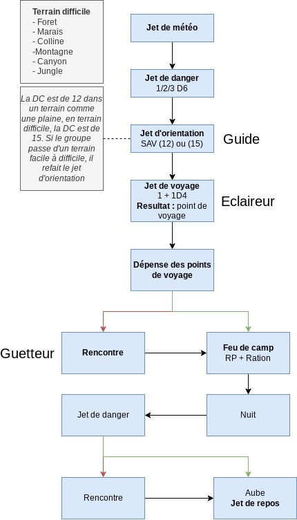 Voici la liste des actions possibles pour un groupe de personnages lors d'un voyage :