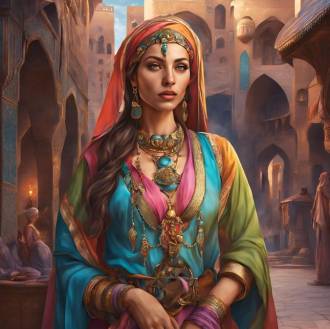 Les Hazalaris sont un peuple prospère, établi le long des rives du fleuve Zermer, où ils ont fondé plusieurs cités-états florissantes. Situés à un carrefour stratégique entre le nord et le sud de Solaris, ils jouent un rôle central dans le commerce continental, assurant la circulation des marchandises à travers leurs voies fluviales, liant les contrée du Levant ou de Kal'Darash à la puissante Hexarchie de Zamorah. Leurs vêtements, souvent en soies colorées avec des teintures exotiques comme le violet et le pourpre, reflètent leur richesse et leur goût pour le raffinement. Ce peuple, à la peau bronzée, est connu pour ses marchés dynamiques où se mélangent épices, soieries et artisanats venus des quatre coins du monde, faisant de leurs cités un carrefour cosmopolite.