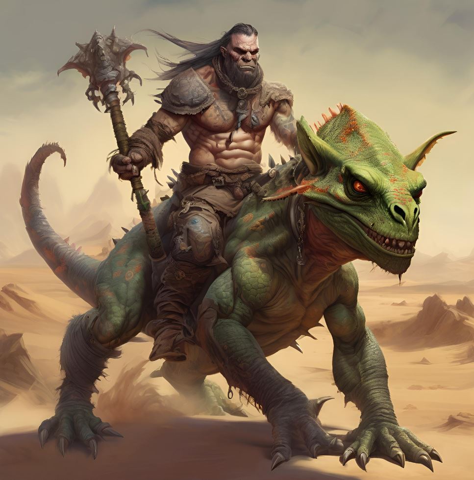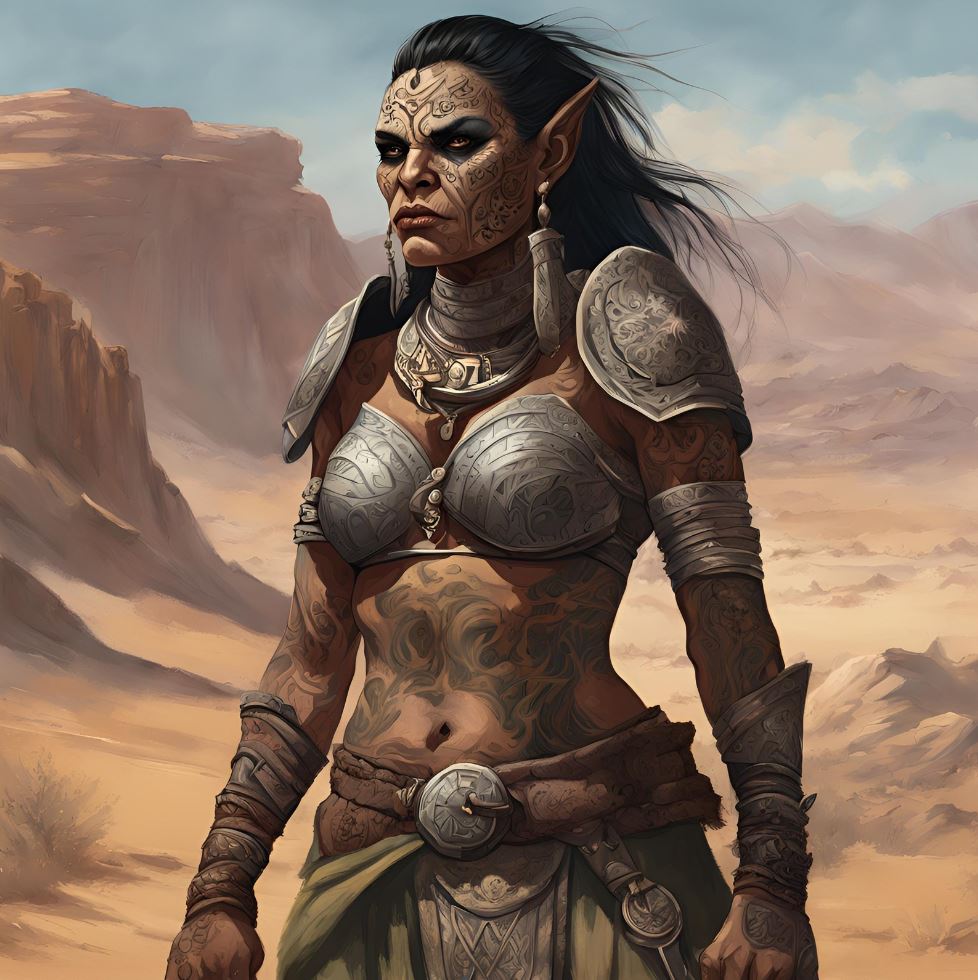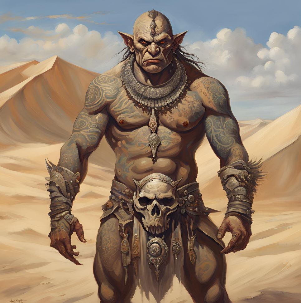 Des vastes étendues désertiques de l'Ishbad aux contrées arides de Kosh et de l'Otan Olomaï, les tribus des Marches Poussières, appelées Rakhis, représentent la plus farouche et redoutée des ethnies orcs de Solaris. Ces nomades infatigables, endurcis par les conditions extrêmes de leur environnement, arpentent la terre aride à la recherche de cibles faciles. Caravaniers et villages isolés vivent sous la menace constante de ces pillards qui surgissent des dunes ou des collines, frappant sans avertissement avant de disparaître aussi vite qu'ils sont apparus, enveloppés dans un nuage de poussière à dos de montures rapides, les bankhis, des grands lésards adaptés au désert.