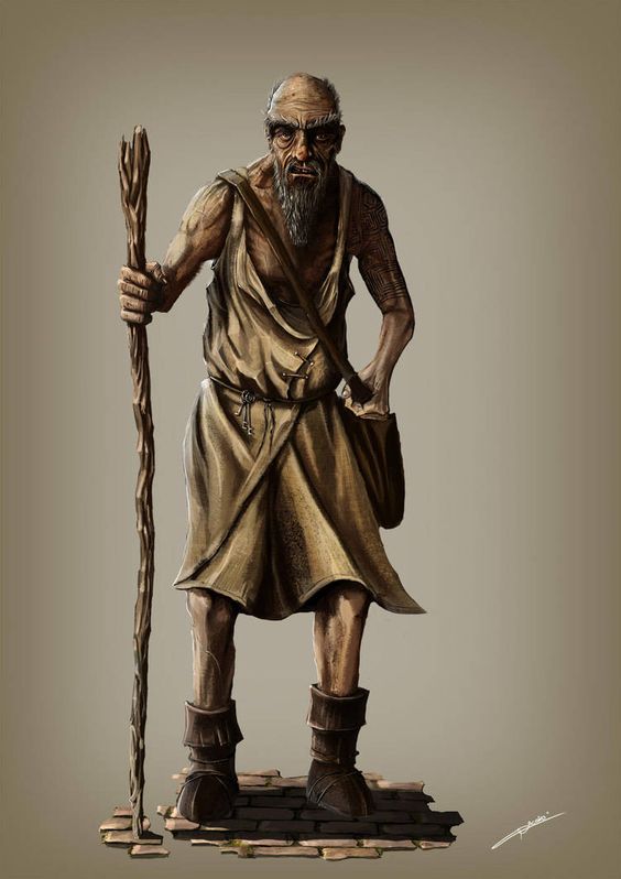 Selon les récits anciens, Elimbath est un homme au destin brisé, né dans la crasse d’un quartier misérable, sans nom ni famille. Il vécut comme mendiant, voleur, portefaix, esclave, puis mendiant à nouveau. À chaque étape, il connut l’humiliation, la faim, le froid, la solitude, et l’indifférence des puissants. Un jour, alors qu’il n’était plus qu’un corps famélique couché dans la boue, la déesse Aephanis elle même descendit vers lui. Non pour le sauver, mais pour lui proposer une épreuve :