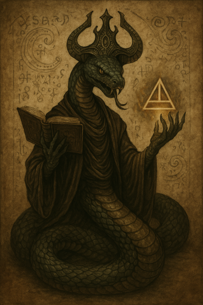 Gazarak le dieu réptilien est un dieu discordant, père des savoirs obscures et de la magie noire, il offre ses faveurs à ceux qu'il considère digne de recevoir les connaissances sur la magie la plus sombre. Ses adeptes sont des hommes assoiffés de pouvoir et prêts à tout les sacrifices pour obtenir l'attention et les savoirs du dieu occulte, mais Gazarak est un dieu froid, perfide et manipulateur, qui utilise les mortels pour accomplir ses propres desseins, faisant miroiter le pouvoir suprême, sans jamais l'accorder totalement. Il encourage ses adeptes à s'aventurer toujours plus loin dans l’étude des savoirs interdits, ce qui mène inévitablement les mortels à la folie.