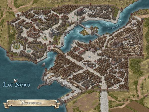 La cité indépendante de Norograd est la plus grande des cités joyaux de transnoroyévie, elle fût fondée par des aventuriers istariens en quête d'or après la découverte des grandes rivières aurifères dans la région. Établie sur les rives du lac Noro, la ville n'était alors qu'un avant poste fortifié faisant face à de nombreuses attaques des nomades kaal et des tribus yakkut. Avec le temps l'or de la rivière finit par s'épuiser, mais la découverte de gisement dans une ravine au sud de la ville et l'installation de villages miniers , Norograd devint petit à petit une grande ville aux frontières du monde sauvage de la steppe, les arrivées successives de populations et l'absence de pouvoir central fort créant un étalement de quartiers anarchiques au sud de la colline de la cité.